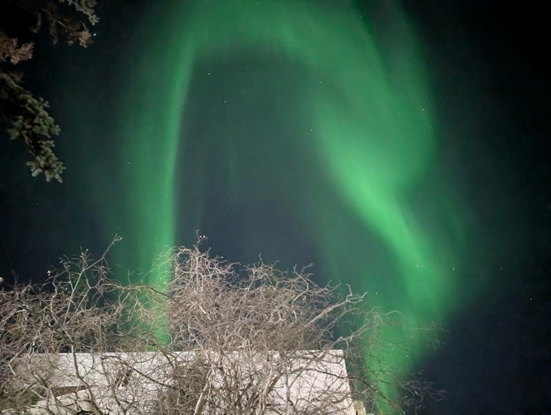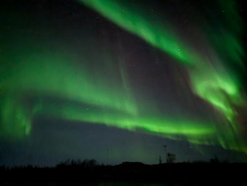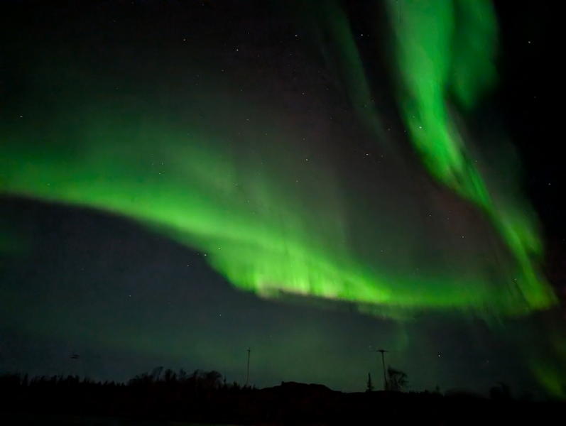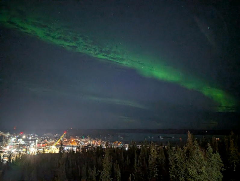 一般に高緯度地域では夏は夜が短いためオーロラは見えづらいと言われるがイエローナイフでは8月下旬から4月中旬まで観測可能