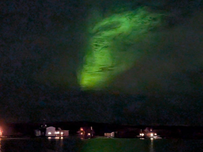 但し、実際のオーロラは写真のようなはっきりとした緑ではなく白っぽく見え、目が慣れるまでは雲や煙と見分けがつかないほど(2025)