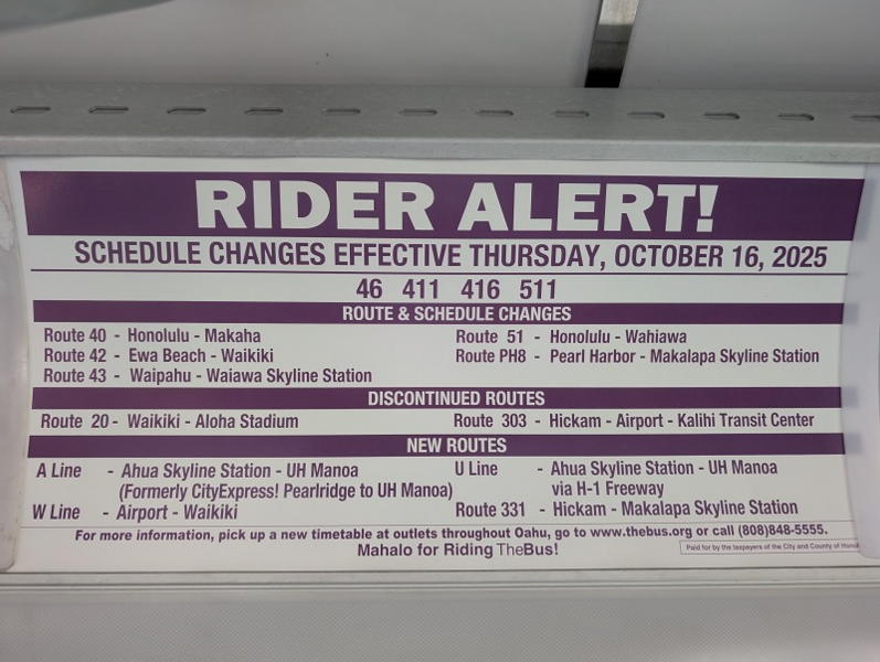 ホノルル近辺を走る公共バス、2025年10月16日ハワイに到着したまさにその日に空港からワイキキまでの新路線"W Line"が開設された