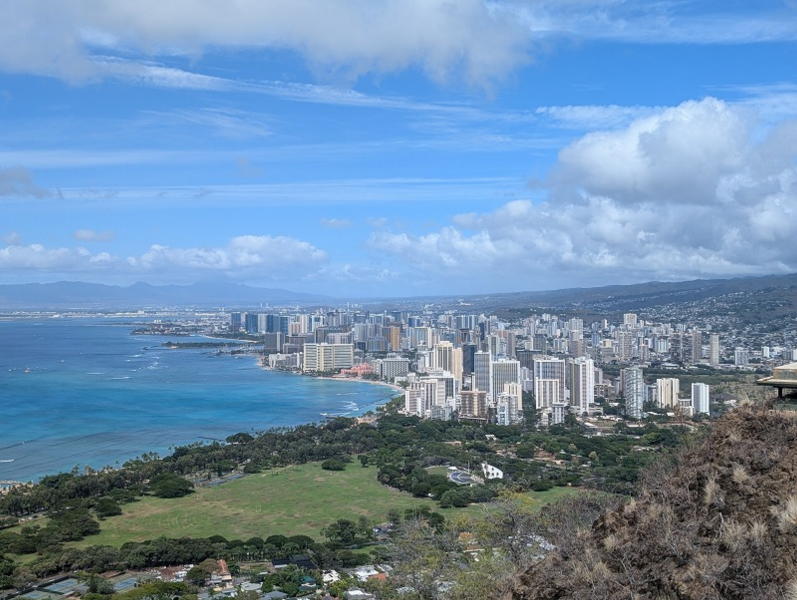 ホノルルの東にある噴火口(死火山)、カルデラ外縁にある標高232mの展望所からはワイキキが一望できる、州立公園、入場料・駐車場代要
