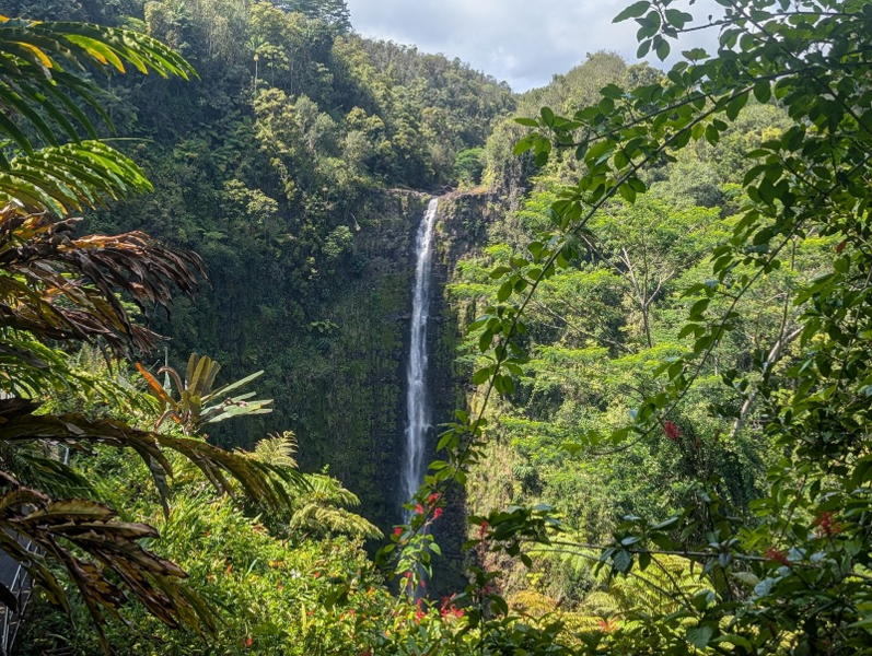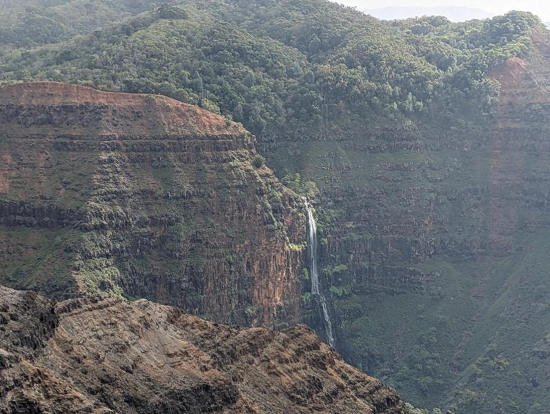 落差135mの美しい滝だが展望所からはやや遠い、もう一つカフナ滝が遊歩道から見えるはずだが音はすれども姿は見えず