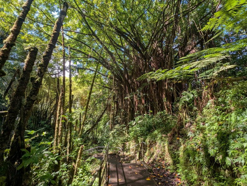 長短さまざまなトレッキング・コースがあるが雨も多いためぬかるみや滑りやすい場所も多く替えの靴やズボンなどがあったほうが無難