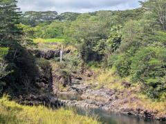 ヒロの街の西にある滝、虹がかかることが多いという、街から近く観光客も多いが落差約24mで大きな滝ではない、無料