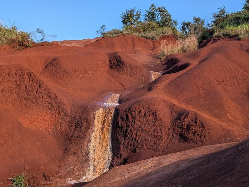 太平洋のグランド・キャニオンとも称され赤土の渓谷と周囲の緑の植物とのコントラストが美しい、州立公園で入場料・駐車場代がかかる