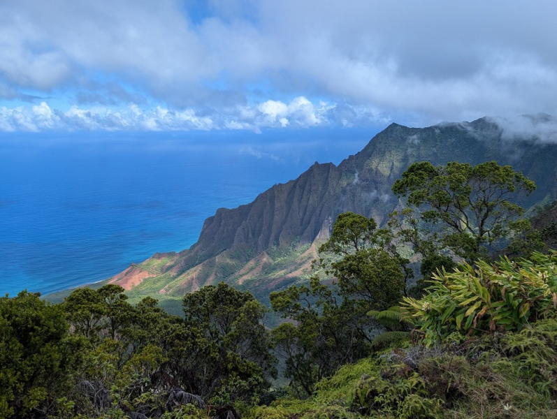 但し、ここからナパリ・コーストには下りられず島の東岸から大回りする必要があり最後は往復数日のトレッキングを要する