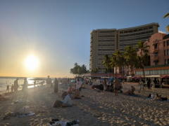 かつての日本人のハワイのイメージはまさにここだった、ダイヤモンド・ヘッドを背に赤みがかった砂が美しいがビーチは意外に幅が狭く象徴的な場所